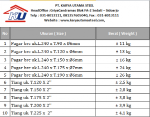 Kunjungi website utama kami di www.karyautamasteel.com. Kami siap melayani pengiriman seluruh wilayah Indonesia.